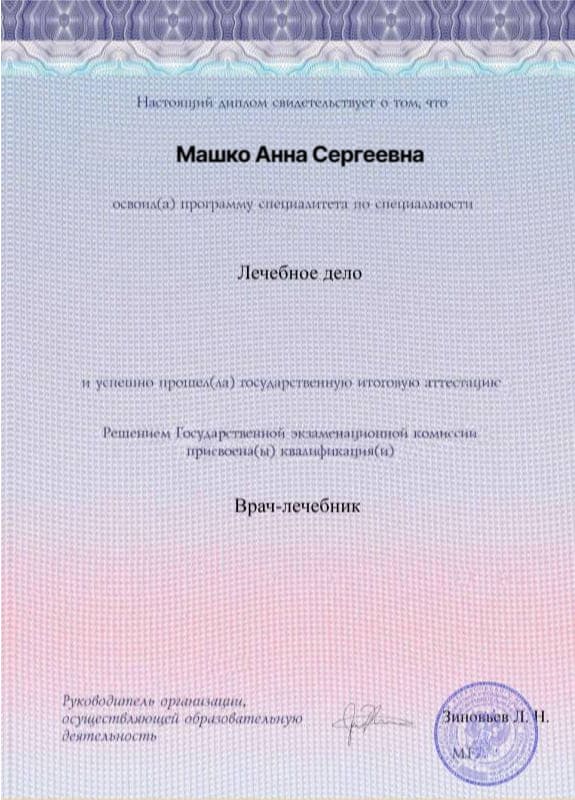 Главная Врачи Машко Анна Сергеевна